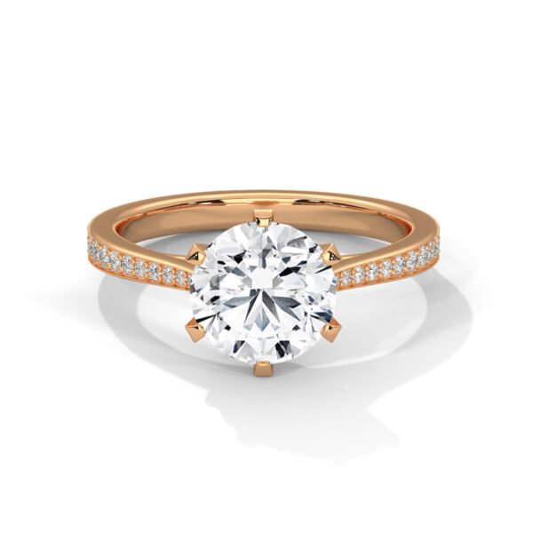 Classic Solitaire Ring with a Pavé Diamond Band. Choose the Classic Round Brilliant Shape or a Emerald Cut. In Case You Desire Another Fancy Shape, Kindly Connect With Our Team.